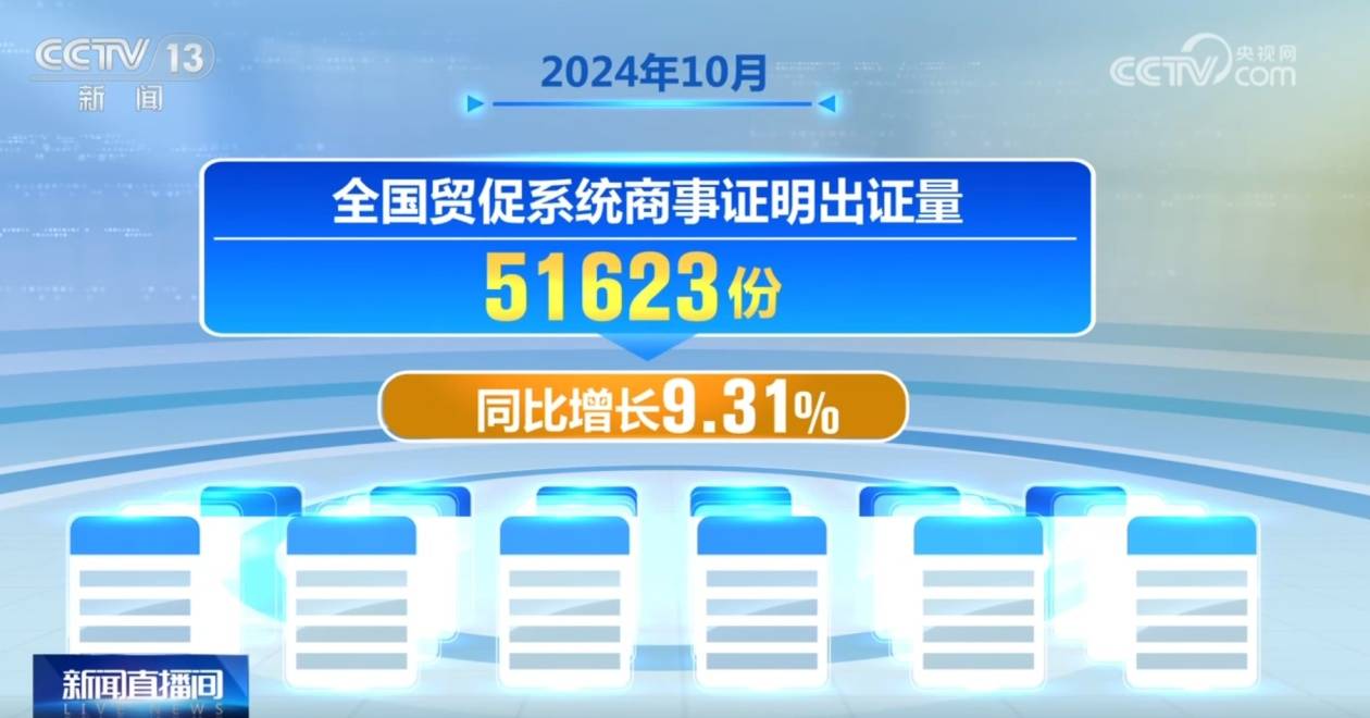 2024年10月,宇宙贸促系统累计签发原产地文凭、ATA单证册、商事阐述书等种种文凭61.12万份,较上年同比增长20.41%。宇宙贸促系统优惠原产地文凭签证金额为71.72亿好意思元,同比增长43.14%;RCEP原产地文凭签证金额为7.84亿好意思元,同比增长26.40%。出口指标国包括日本、韩国、印尼、越南等13个成员国。宇宙贸促系统商事阐述出证量51623份,同比增长9.31%。